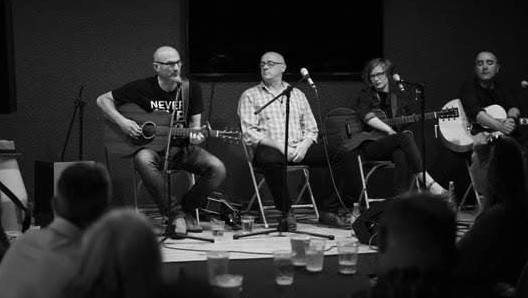 Billed as a Launch night for a compilation album called What if? – 14 tracks put together by Durham live music promoter Down By The River to raise funds for local mental health charity RT Projects. The gig brought together 9 of the artists who had contributed to the album. The evening started with 5 singer/songwriters onstage; Steve Pledger, Lee Maddison, Anne Marie Sanderson, Ian Bartholomew and the youngest of the five, North Yorkshire based George Boomsma.